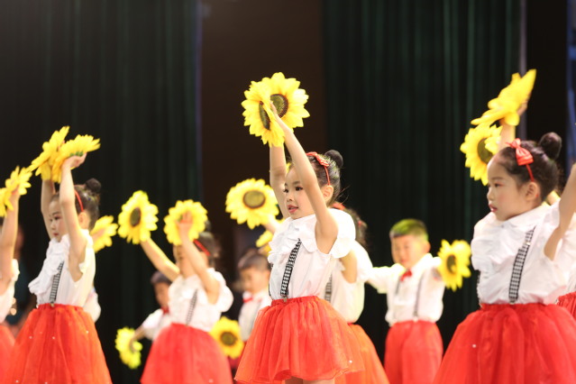 精彩的文艺节目在两位小主持人激情洋溢的开场词中拉开帷幕。幼儿代表用稚嫩的话语表达了心声,充分表现了幼儿园“家园共育”的办园理念。幼儿园11名教师用优美的舞姿将“彩云之南,我心的方向”表现的淋漓尽致。各班也分别带来了形式多样、内容丰富多彩的节目,舞蹈《边走边唱》告诉小朋友们要像小蜗牛一样,即使遇到困难,也要向往美好;亲子舞《爸爸的话》内容感人、孩子们和爸爸们的互动将演出推向高潮,赢得了家长和在座领导的阵阵喝彩;朗诵合唱《我和我的祖国》,表达了小朋友们对伟大祖国的衷心依恋和真诚歌颂。表演唱《童心向党》传达了小小少年勇于进取、庆祝建党百年,报效祖国的坚定信念。一个个精彩的节目轮番上演,现场洋溢着浓浓的节日味道,掌声、笑声、叫好声此起彼伏,大剧场成为一片欢乐的海洋。