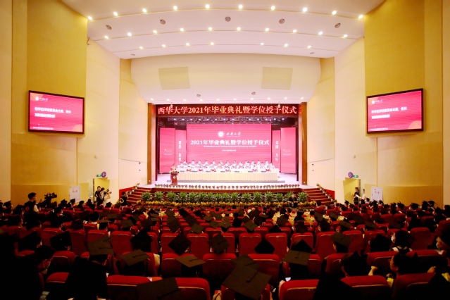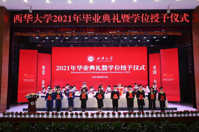 黎明即起,孜孜为善;离别在即,扬帆起航。6月24日上午,西华大学2021年毕业典礼暨学位授予仪式在学校艺术大楼大剧场举行。校党委书记余孝其,校长刘树根,副校长许州,校党委副书记王政书,校党委副书记李传林,副校长费凌、刘小兵,校学位评定委员会全体委员,教师代表,家长代表,校友代表以及2021届毕业生代表参加了典礼。余孝其主持典礼。