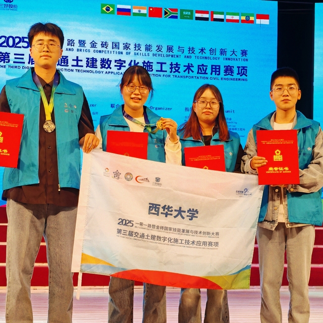 我校参赛团队由汽车与交通学院朱晓海老师全程指导。备赛期间,朱晓海老师紧扣“赛课融通、协同育人”理念,带领学生逐字拆解赛题、反复打磨实践方案,在攻克技术难点的过程中,不仅帮助学生深化了交通工程领域的理论知识,更着重提升了团队的创新思维、实操能力与协作效率。最终,我校交通工程专业学生徐沙、杨尚艳组成的团队凭借扎实的专业功底与创新的实践方案荣获全国一等奖,同专业学生李茂源、张阳组成的团队荣获全国二等奖,充分展现了西华学子过硬的专业素养与竞技能力。