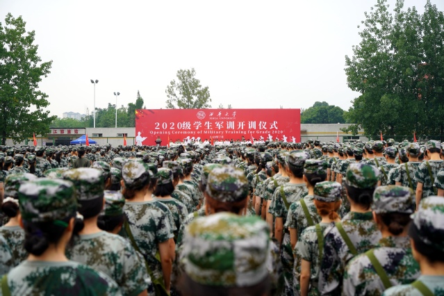 最后,校党委书记余孝其庄严宣布:“西华大学2020级学生军训开训!”至此,在一阵热烈的掌声中,我校2020级本科生为期两周的军训工作正式拉开大幕。相信2020级的同学们定能坚持不懈地完成军训任务,用顽强的毅力诠释军训意义,用整齐划一的动作展现青春力量,并在此过程中培养良好的习惯和优良的作风。