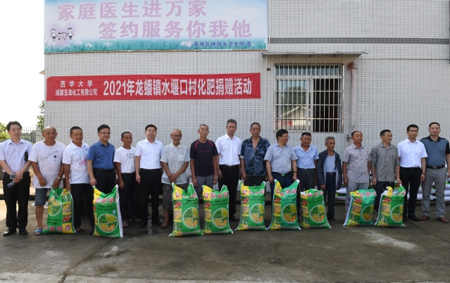 之后,刘树根一行来到了我校新一轮乡村振兴定点帮扶村----龙蟠镇水堰口村村委会,向水堰口村在家农户代表发放了我校校友企业--成都玉龙化工有限公司捐赠的复合肥。今年是成都玉龙化工有限公司连续第四年向我校在嘉陵区的定点帮扶村捐赠化肥,此次捐赠化肥650袋,共32.5吨,价值5.2万元。