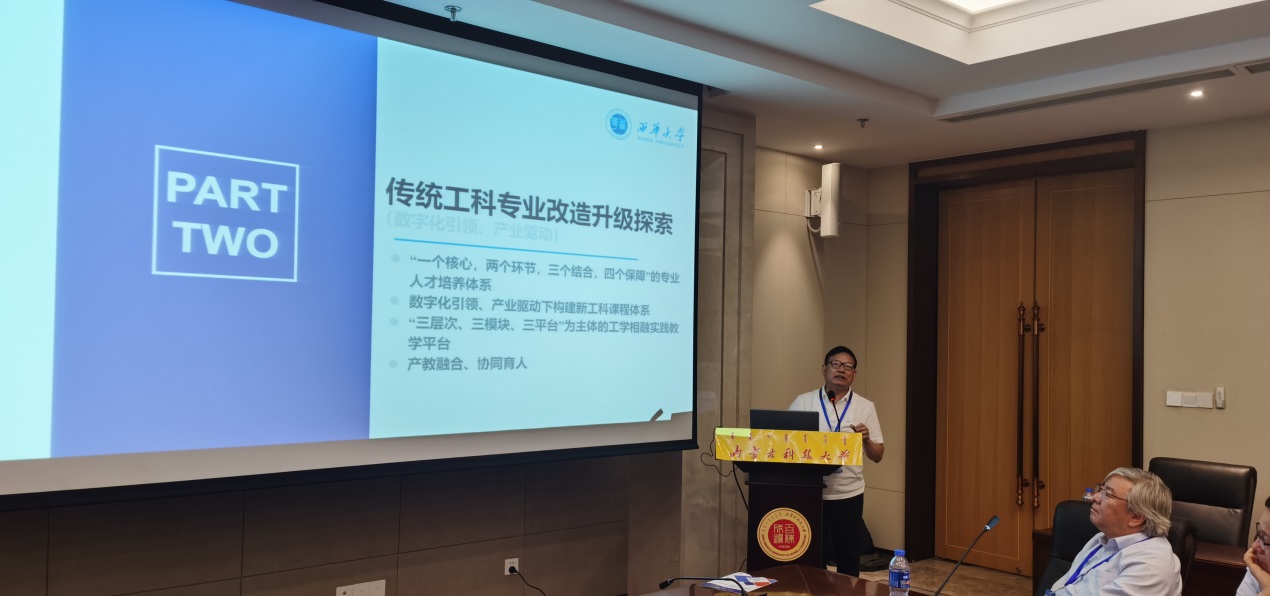 栾道成在“专业建设与人才培养分论坛”作了主题报告。以“传统工科专业转型升级路径探索与实践”为主题,以西华大学为例,从数字化人才“产、教、学、赛、研、创”协同育人实践、数字化课程群建设及成效、西华大学材料专业升级改造等内容向与会专家进行了汇报交流。通过交流让更多的同行了解学院在专业改造、课程建设、产教融合、协同育人等方面的创新模式与成效,得到了与会教师及专家的充分肯定。