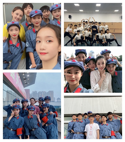 学院在演出队伍中成立了临时党支部,设立了支部委员会,支部书记由此次排练老师、学院学生办公室主任杨科担任,副书记由舞蹈系主任曾焯担任,组织健全,组织委员、宣传委员、纪检委员都有,大家分工明确。临时党支部的建立,充分发挥了党员师生先锋模范带头作用,发挥基层党组织战斗堡垒作用。支部共计11名学生党员,2名教师党员。在此期间,支部共召开了5次支部会议,强调了排练和演出的重要性,会议要求党员们在晚会节目中“学党史、学红军优良传统”等,以一个合格的党员为中国共产党成立100周年贡献一份力量。在整个排练和演出过程中,学生党员时刻冲锋在第一线,以身作则,积极维护团队的利益,遵守纪律要求,时刻关心团队成员,主动承担收发道具,服装发放和回收等细致的服务工作,充分发挥了党员的先锋模范作用。2018级舞蹈表演专业学生党员商乐担任整个团队的学生联系人,负责学生排练通知的发布和排练要求的监督。尽管受到一些因素影响,她不能做到完全与任务同步,但她会第一时间把任务传达给每位同学,不遗余力地为同学们服务。