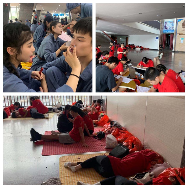 2019级舞蹈表演专业苏路越同学回忆到,排练期间,同学们经常由于太困太累在休息区域倒头就睡。正值高温,很多同学的衣服都被汗水打湿,可是服装每天都要穿,来不及洗过后晾晒,因此绝大部分同学坚持穿着被汗水打湿的服装排练,原本被体温烘干的衣服不一会就又沾满了汗水。有些同学因一些大幅度动作而崴脚,甚至部分同学旧伤复发,痛不堪言,虽如此,他们仍不曾放弃,咬牙坚持。“虽然湿衣服黏在身上很不舒服,但为了演出,再苦再累我们也觉得值得!尽管汗水是苦涩的,但一想到不久后就可以在大家面前展示我们的舞蹈,就不觉得苦了!”