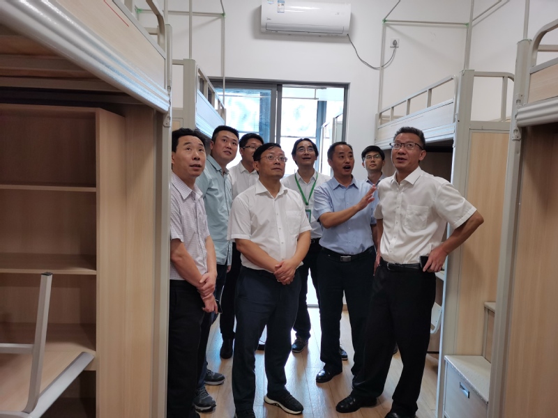 刘树根一行先后到二期食堂、学生宿舍、教学楼、图书馆、会堂、体育馆、学术交流中心、学生事务办事大厅、教师周转房等场所进行调研,仔细查看食堂开餐筹备及配套建设、教学楼教学设施设备、室外景观绿化施工进展等情况。刘树根详细询问了校区防疫物资储备保障、学生返校准备工作、食堂消毒以及学生就餐方案等情况,听取相关部门负责人就开学前准备情况汇报,并与现场工作人员进行了交流。