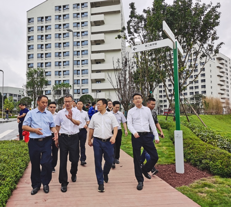 九月,宜宾校区即将迎来4300余名新生入驻,学校十分关心宜宾校区开学准备情况。8月27日,校长刘树根、副校长费凌前往宜宾校区调研指导开学准备工作。宜宾市委常委、组织部部长袁华兵、宜宾市人大常委会副主任邓前卫,宜宾市教育和体育局、宜宾市大学城科创城建设服务局、宜宾市科教产业投资集团有限公司主要负责人和学校后勤服务总公司、教务处、宜宾校区管委会负责人参与调研。