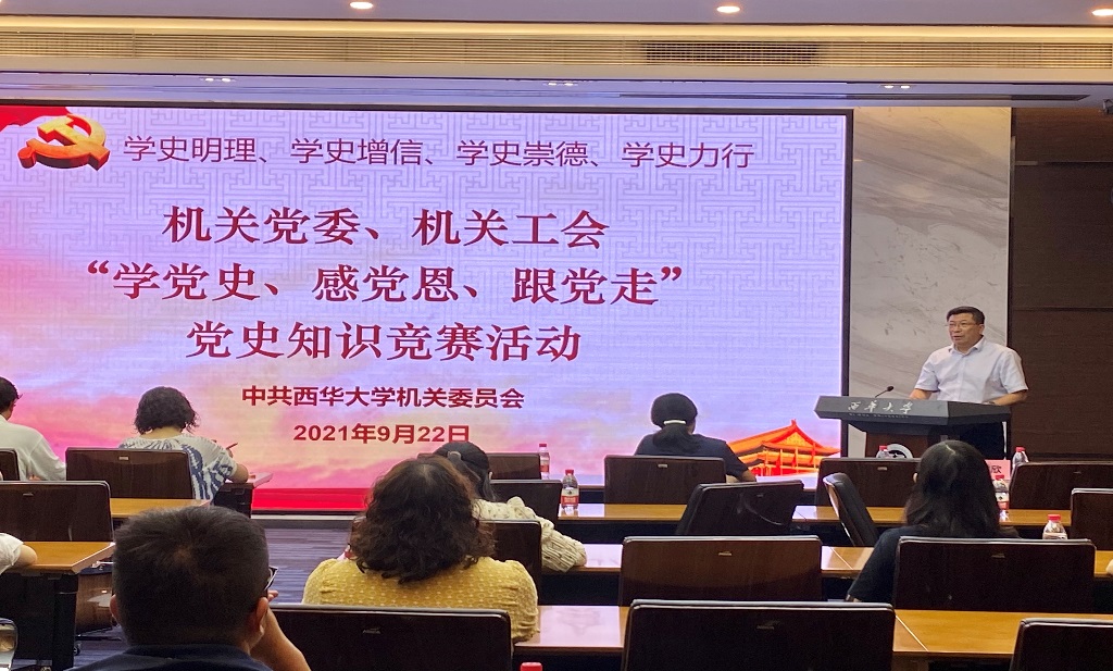 校党委副书记王政书在党史知识竞赛活动上作了讲话,他为全体参赛者加油鼓劲,对竞赛活动提出要求,希望广大党员、教职工“以比鼓劲、以赛促学”,坚定信念跟党走,传承弘扬伟大建党精神,忠诚党的教育事业,牢记立德树人初心,担当“为党育人、为国育才”使命,以昂扬奋斗姿态悟思想、办实事、开新局,为学校发展作出积极贡献。