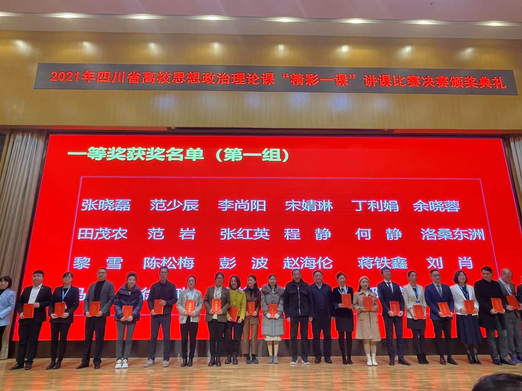 近日,由中共四川省委教育工作委员会、四川省教育厅主办的2021年四川省高校思想政治理论课“精彩一课”讲课比赛决赛结果出炉,我校马克思主义学院6名教师从全省103所高校378名参赛教师中脱颖而出,荣获一等奖1项,二等奖5项。