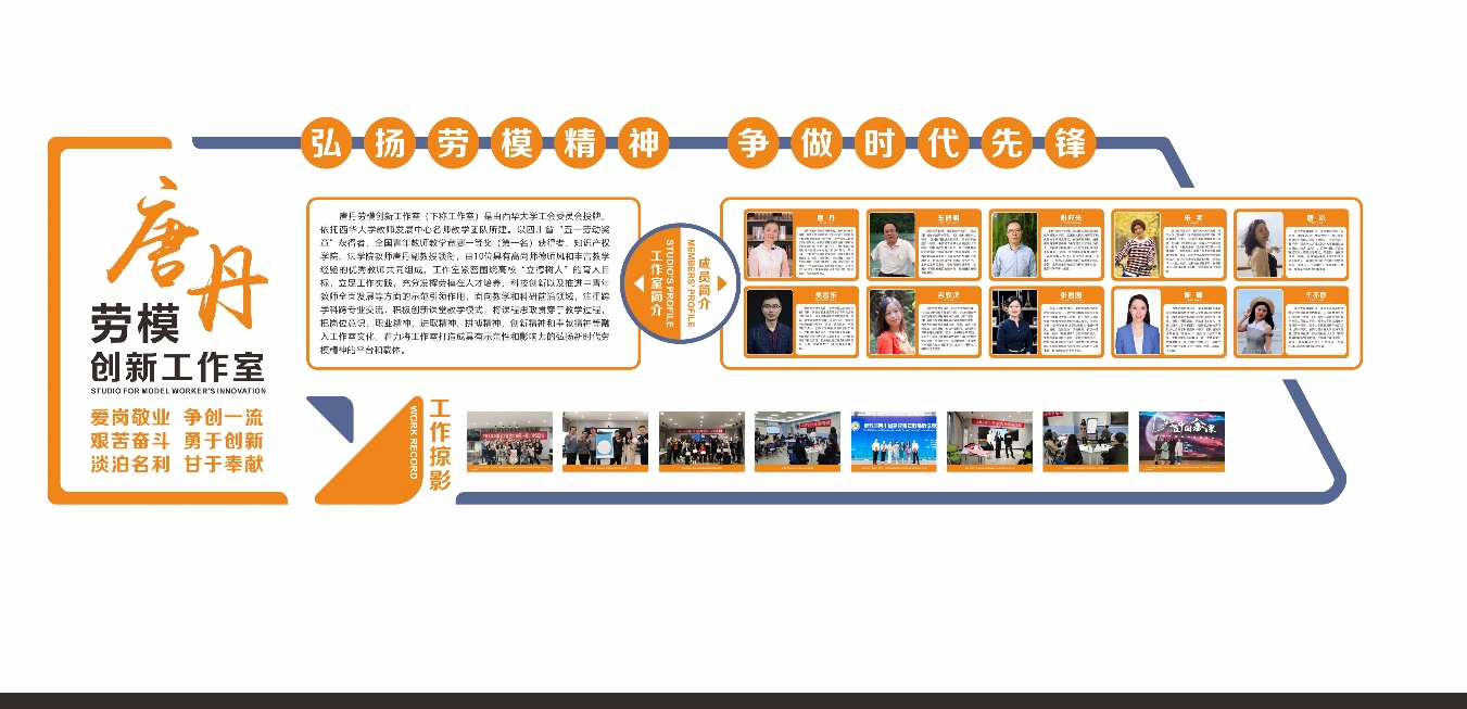 工会以唐丹劳模创新工作室为抓手,大力宣传和弘扬劳模精神,发挥劳模示范引领作用,激励广大教职工立德树人、建功立业,协同相关职能部门通过举办“名师下午茶”沙龙交流、教师培训和日常“传、帮、带”交流指导等,组织教师开展跨学科跨专业交流、课程思政工作交流,加强对青年教师的指导以及教学竞赛培训,充分发挥了工作室的示范效应和辐射效应。工作室2020年被省教科文工会命名为“劳模和技能人才创新工作室”,2021年中国教科文卫体工会教育工作部部长刘飞一行来校调研,对工作室的工作给予高度肯定。