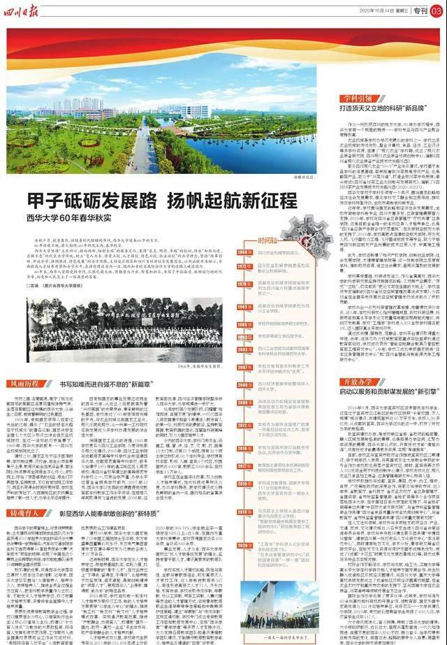 《四川日报》以“甲子砥砺发展路 扬帆起航新征程”为题,报道我校60年发展
