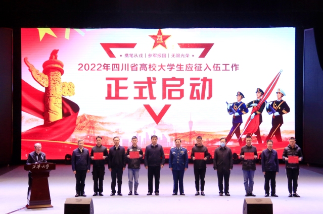 在第一阶段的工作推进会上,省军区动员局局长、省征兵办主任吴弟伦通报2021年高校大学生应征入伍征集情况,教育厅副厅长戴作安宣读2021年大学生征兵工作先进高校名单。西华大学、成都体育学院、四川轻化工大学、成都大学、绵阳城市学院、成都艺术职业大学、四川航天职业技术学院、四川电子机械职业技术学院等8所高校获评“2021年度全省大学生征兵工作先进高校”。与会领导为获评高校授牌。
