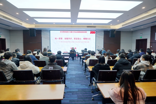 “个人的发展要与祖国的发展连接在一起……”宣讲中,何薇教授紧紧围绕《中共中央关于党的百年奋斗重大成就和历史经验的决议》(以下简称《决议》)的精髓要义和省委十一届十次全会精神,为师生们带来了一场精彩的报告。何薇教授系统阐释了《决议》起草的背景意义和三条重要原则,解析了《决议》的主题主线、支线和贯穿性线索,认为《决议》逻辑线索鲜明、表达方式整齐划一,凸现了党的政治决议特有的政治性、权威性、准确性、鲜明性。何薇教授还从“深刻领会省委十一届十次全会的重大意义”“深入学习贯彻党的十九届六中全会精神巩固党史学习教育成果的重大部署”等方面阐释了省委十一届十次全会精神,指出要用全会精神统一思想、凝聚共识、坚定信心、增强斗志。