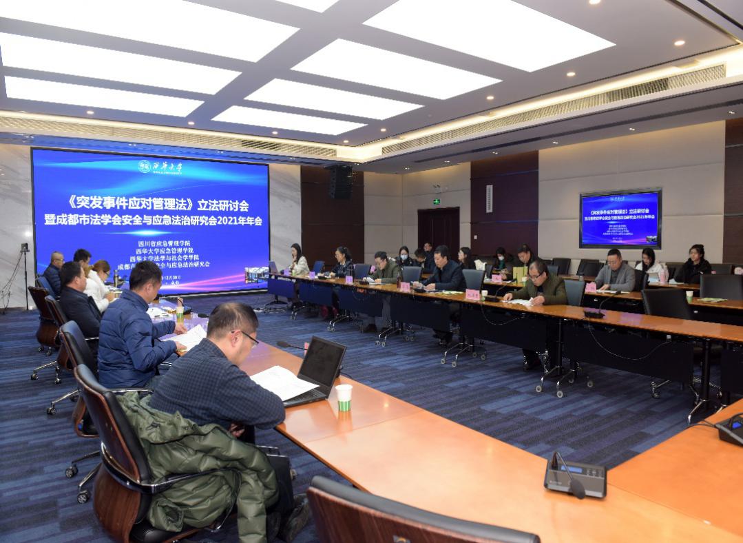 12月30日下午,《突发事件应对管理法》立法研讨会暨成都市法学会安全与应急法治研究会2021年年会通过线上线下形式在西华大学办公楼101会议室举行。这是《突发事件应对管理法(草案)》提请十三届全国人大常委会第三十二次会议进行第一次审议后,国内较早就《突发事件应对管理法(草案)》进行研讨的专题学术会议。