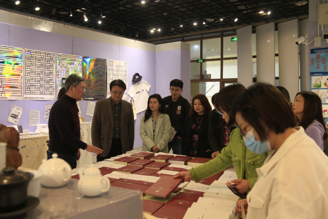 开幕式结束后,嘉宾和师生们一起饶有兴趣仔细观看了设计展品,对孔子文化的当代设计进行了深入交流,也对课程建设和未来发展给出了良好的建议和祝愿。