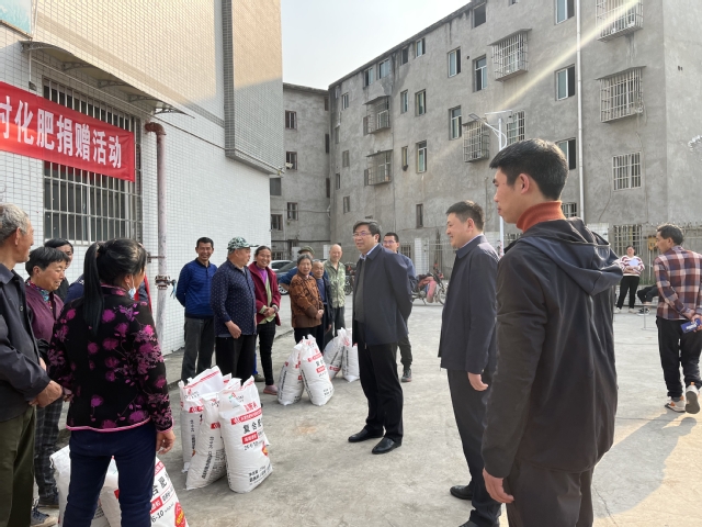 王政书与乡亲们进行了深入交流,关心他们的生产生活状况,并在龙蟠镇水堰口村文化活动室前,与受捐化肥的村民们一同举行了2022年龙蟠镇水堰口村化肥捐赠活动。成都云图控股股份有限公司总裁、我校1994级工民建专业校友宋睿此次向水堰口村捐赠了600袋复合肥,王政书将代表着学校关心和祝福的化肥发放到村民手中,鼓励大家为更美好的幸福生活共同努力。村民们纷纷表示:非常感谢帮扶单位西华大学对春耕生产的关怀和支持,大家都非常高兴,提高了大家种粮的积极性和实现丰收的信心。