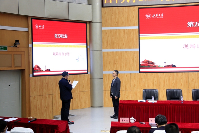 副校长李秋实向校党委书记余孝其作现场承诺