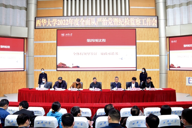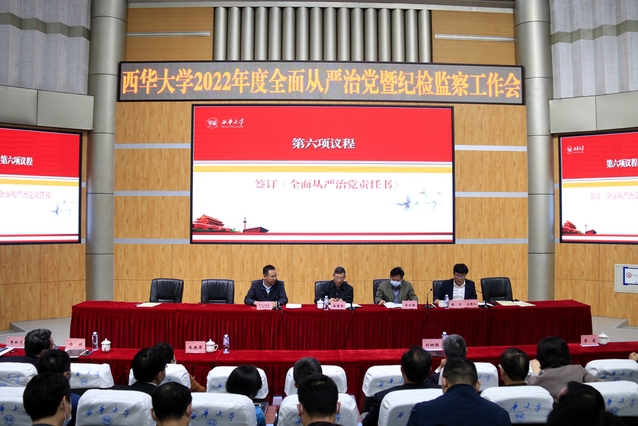 会上,校党委副书记、校长刘树根传达学习了中纪委十九届六次全会、省纪委十一届六次全会、2022年全国教育系统全面从严治党工作视频会、省委教育工委教育厅党组2022年全省教育系统全面从严治党工作视频会精神。省纪委监委驻西华大学纪检监察组组长、校党委副书记、纪委书记朱燕萍总结回顾了2021年学校纪检监察工作,指出了当前工作中存在的问题和不足,并部署了2022年学校纪检监察工作的重点任务。