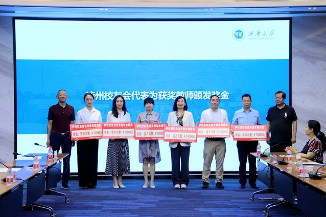 泸州校友会代表为获奖教师颁发奖金
