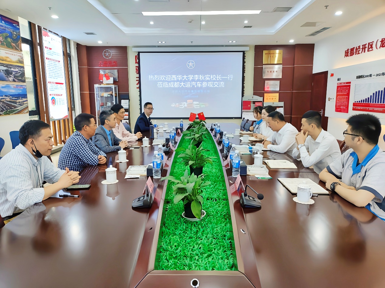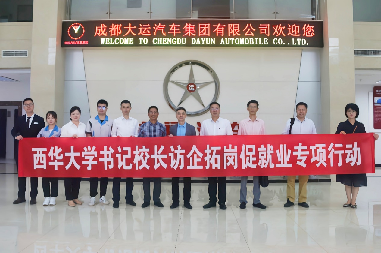 为进一步深化校企合作、推动毕业生实现更加充分、更高质量就业,5月25日上午,副校长李秋实带领汽车与交通学院党委书记周华、院长黎青松一行赴成都大运汽车集团有限公司开展“访企拓岗促就业”专项行动,同公司常务副总经理谢平、技术中心副总监满海涛、人力资源部主管林艳及校友代表座谈,了解企业生产经营及产品研发需求,并就人才培养、拓展就业、科研协作、研发装备开放共享等方面开展校企合作交流。
