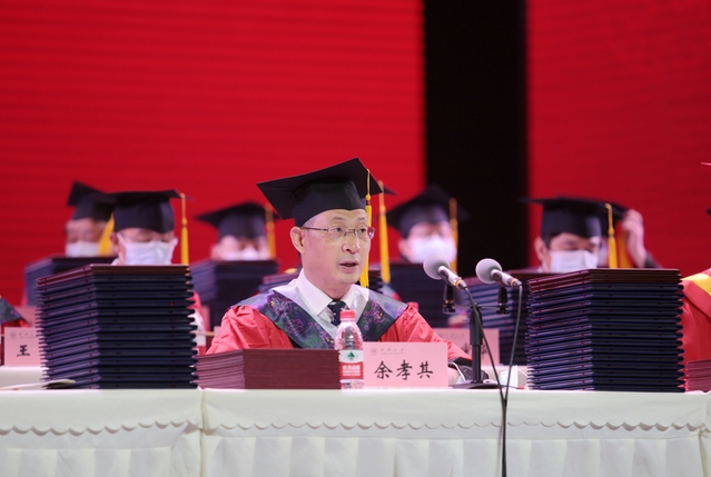 刘树根校长寄语毕业生:一要求真求是,热爱学习研究。希望同学们走出校门后,依然保持读书和研究的习惯,追知识之“光”,求真理之“是”,把阅读思考作为生活方式,让终身学习成为自觉追求。二要明德力行,厚植家国情怀。希望同学们牢记“明德”的校训精神,肩负社会责任,恪守职业道德、涵养高尚情操,在报效祖国、造福人民中实现自身生命的价值与意义,让青春在为民族、为人民、为人类的不懈奋斗中绽放绚丽之花。三要追求卓越,不负青春韶华。希望同学们有战胜惰性、跳出舒适圈的勇气,突破思想观念的自我束缚,对现状保持“永不满足”的奋进精神,敢为人先、勇立潮头,用奋斗永葆青春的活力,用卓越书写人生的自信。
