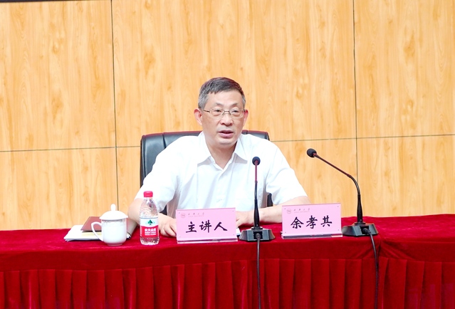 开班式后,校党委书记余孝其以“践行‘好干部’标准 提振干事创业精气神——中层干部的政治素养与能力提升”为题,围绕“如何当一名好干部”话题,为本次专题读书班作第一讲专题报告。校党委副书记张力主持培训会。