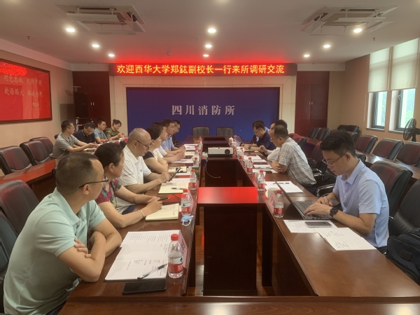 6月21日,副校长郑鈜带领应急管理学院、理学院、电气与电子信息学院相关人员一行6人前往应急管理部四川消防研究所调研交流,与应急管理部四川消防研究所党委书记杨顺修、所长刘程、政治处主任张青岚、质检中心副主任张翔、科技处副处长葛欣国、研究室主任张泽江、何瑾和副主任何学超、阳世群以及相关研究人员进行座谈。双方就四川应急管理教育联盟签约、科研合作、消防工程专业建设、大型科研仪器设备共建共享、研究生培养、实验实训基地建设、就业基地建设等方面进行了深入交流,座谈会由张青岚主持。