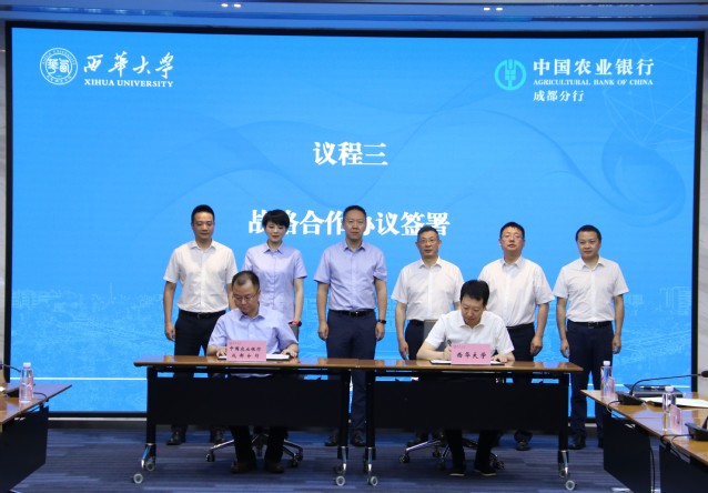 在与会人员的共同见证下,西华大学与中国农业银行成都分行签署全面战略合作协议签。参加签约仪式的还有农业银行成都分行相关负责人、学校相关职能部门负责人。