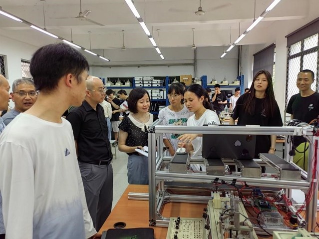 本次比赛共有27个小组报名参赛,其中参赛作品包括规定类题目以及自选类题目。评审正式开始后,评委专家首先分别在6A203和6A301通过参赛作品选手讲解PPT的方式了解参加作品的选题背景、系统方案、电路设计、程序流程、成员分工以及作品效果。评委专家对两组作品进行现场测评,对作品的性能、特点等进行了提问,提出相关改进建议,并通过测试进行公正评分与相关指导。