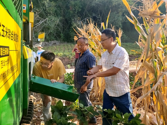 8月22日,西华大学现代农业装备研究院在中江县金穗源粮食专业合作社农场召开玉米-大豆间套作玉米收获现场会。四川省农业农村厅农业机械化处二级调研员张晓玲,省农机化发展推广中心主任尹显智、副主任张小军,四川农业大学机电学院副院长张黎骅,省农机鉴定站袁志敏主任,省农机院刘波所长以及德阳市农业农村局和中江县农业农村局的领导莅临现场指导。