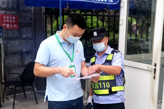 “我现在单身,家住校内,作为一名党员带头值夜班是应该的……”党员志愿者、保卫处的许宇生手上的工作不少。站岗执勤、校园巡逻、值班值守连抽转,西大门、南大门、西华苑北苑东门需要24小时值守。“确实比较辛苦,一方面要面对少数人的不理解和怨言,因为严格执行学校疫情防控政策、严格落实出入门要求后,部分教师家属和退休教师不太理解,想强行冲卡;另一方面,夜间通宵值班,有食堂后勤保供车辆进出、有黄码人员解除隔离后返校、有受伤人员需要出校就医等,就需要按照流程一一核验合格后方可放行。 受点委屈、挨点骂没有什么,学校师生员工健康平安就是对我们最大的安慰……” 还未说完,许宇生又被电话通知赶往西大门去了。