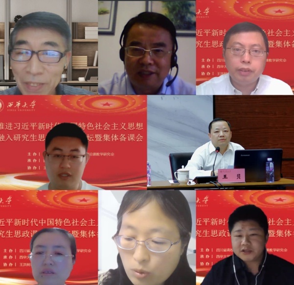9月17日,由四川省高校研究生思想政治理论课教学研究会、西华大学马克思主义学院承办、四川省高校思想政治教育“王洪树名师工作室”协办的“推进习近平新时代中国特色社会主义思想融入研究生思政课高端论坛暨集体备课会”在我校召开。因疫情的影响,本次会议采用线上方式举行,来自全省20余所高校、科研单位400余名马克思主义理论专家、教师和研究生参加本次线上会议。