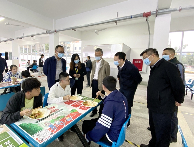 刘树根校长一行在彭州校区食堂了解新生用餐情况并看望慰问新生