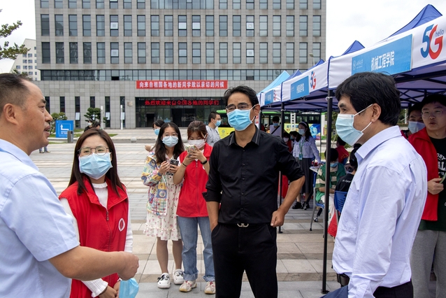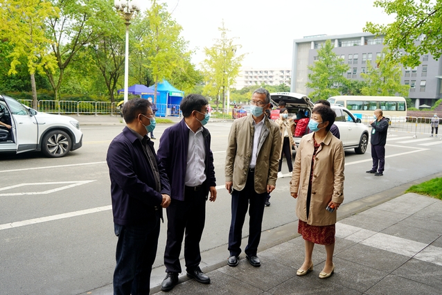 10月6日上午,刘树根校长一行来到郫都校区南大门、东大门和西大门了解新生入校情况,检查督导疫情防控各环节措施落实情况,向不辞辛苦坚守在工作一线的值班值守负责人、工作人员、师生志愿者和后勤安保人员表示感谢,详细了解2022级新生的到校情况和初入校园的感受,提醒同学们做好个人防护,尽快适应大学生活,做好大学生涯规划,拥抱理想,在西华开启新的人生。