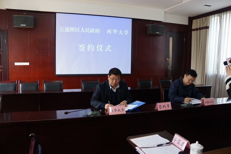 3月13日上午,我校与五通桥区人民政府战略合作协议签约仪式在五通桥区会议室举行。我校副校长王政书与五通桥区委副书记、区长杨军签署了此次协议。我校地方合作与服务处、科技处、相关学院领导以及五通桥区政府办、发改局、教育局、经信局、环保局、安监局等部门主要负责同志参加了签约仪式。仪式由五通桥区委常委、副区长王文波主持。