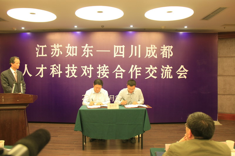 | 5月8日, 江苏如东——四川成都人才科技对接合作交流会在成都举行。如东县政府、多家高新企业代表,西华大学、四川大学、电子科技大学、西南交通大学、西南石油大学、西南科技大学等多所四川省高等院校以及工程物理研究所等科研单位领导及专家出席了此次会议。会上,我校与如东县政府和企业签订了人才科技合作协议。 副校长王政书,科技处处长栾道成,校地合作处处长王志刚、副处长王丽娟,招生与就业处副处长杨洪,就业指导中心主任黄敏,生物工程学院院长陈祥贵,机械工程与自动化学院副院长向中凡、物理与化学学院副院长王周玉、能源与环境学院副院长谷晋川等参加了会议。 交流会由如东县副县长阮平章主持。如东县委常委、组织部长任新峰介绍了如东的资源禀赋、经济发展和人才政策,并向参会高校院所的专家教授,发出了招才引智和招所引院的双重邀请。会上,副校长王政书介绍了西华大学的发展历程、学科建设、科研工作、成果转化以及人才输出情况。随后,任新峰与四川大学科学技术发展研究院院长胡常伟共同为如东人才工作联络站(成都)揭牌。生物工程学院院长陈祥贵代表学校与南通海尔斯医药有限公司签署了“药食两用色素紫草红色素精制研究”项目合作协议;招生与就业处副处长杨洪代表西学校与如东县签订了人才交流合作协议。 为深化人才强县战略,大力实施镇校联姻、教授博士柔性进企业等重点人才工程,针对此次人才科技对接活动,如东县共推出58个企业科技合作项目需求,492个就业岗位和246个见习岗位,主要集中在信息、化工、医药、新材料、纺织、食品等领域。本次交流会前,如东县已在包括西华大学在内的三所高校开展专场招聘活动。