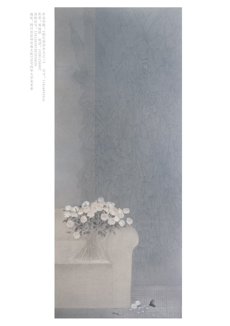 近日,由中国美术家协会和现代工笔画院共同举办的“全国第二届现代工笔画大展”结果揭晓,我校艺术学院美术系教师邓远清选送的作品《陌生的异乡人之三 》成功入围。 全国第二届现代工笔画展旨在进一步繁荣与推动中国工笔画事业,展览力求凸显精致立场,克服时风浮躁现象,传递一种严谨务实、追求完美的文化态度;征稿面向全国,以近年来工笔画家最前沿的精品力作,全力打造一个具有深度学术内涵的专业性绘画大展,呈现二十一世纪现代工笔画的新格局。 展览作品评选分为初评、复评两个阶段进行。评委会从全国各地投上来的8000余件作品中首先初评出652件作品进入复评,最终评选出400件作品参加展览。据悉,“精致立场”全国第二届现代工笔画作品展将于6月中旬在中国美术馆和中国人民革命军事博物馆同时展出。 相关链接:http://001shuhua.com/news/details.aspx?id=3480