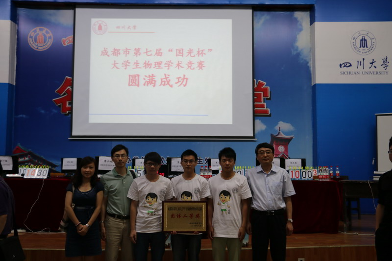 6月7日上午9:00,成都市第七届大学生普通物理知识竞赛总决赛在四川大学成功举行。本次比赛由成都市物理协会主办,四川大学承办,西华大学、西南交通大学、西南民族大学、四川师范大学、成都师范学院、成都信息工程学院、成都理工大学、电子科技大学联合协办。西华大学党委副书记王小林以及物理与化学学院院长冯灏参加了本次大赛。承办单位负责人物理与化学学院刘雪梅带领西华大学代表队参加了比赛。 决赛分为上午的场外实验答辩赛和下午的场内赛两部分。在上午进行的场外实验答辩赛中,西华大学代表队表现优异,获得了700分的高分。下午的场内赛总共分为选择题、问答题、描述分析题和抢答题四个环节。西华大学代表队在这四个环节中得到1360分,仅次于四川大学,获得了本次比赛的“团体二等奖”。 本次决赛中西华大学代表队不仅取得了优异的成绩,而且参赛队员们身着“西华青年品格”的统一服装给所有参赛学校和评委老师们留下了深刻的印象,并且获得了“最萌队服”称号。 此次成绩的获得,离不开学校团委对大学生科技文体艺术节中的重视和支持,离不开物理与化学学院在西华赛区的充分准备和筹划。从初赛的策划、宣传、组织,到决赛队伍的选拔、培训,所有人员都全力以赴。 本次西华大学代表队的优异成绩,极大地鼓舞了西华学子的士气,提高了同学们对物理知识的热情,使大家充分认识到了物理知识的魅力,在全校营造了浓厚的学习基础物理知识的氛围。