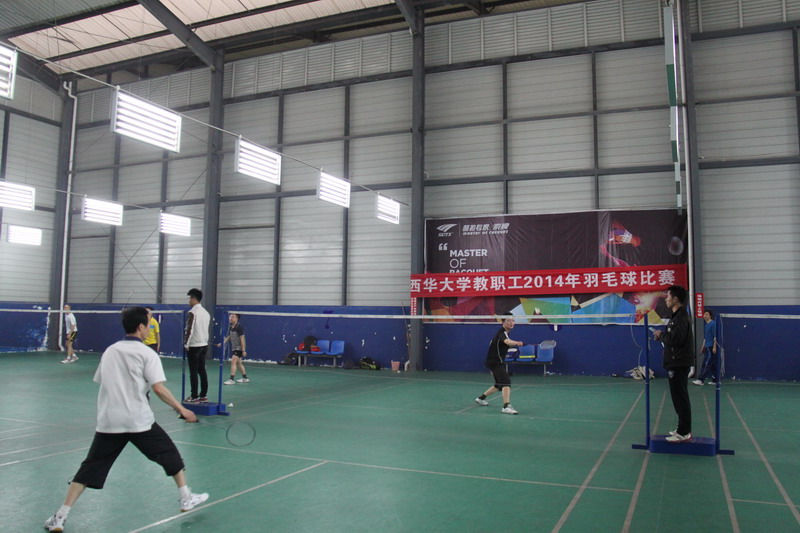 跨步接球、大力扣杀,羽毛球精妙地在空中做着360度旋转;发球者沉着地计算角度,接球者敏捷地探身接球,豆大的汗珠从运动员的额头上落下…… 这是我校2014年教职工羽毛球火热的比赛现场。本次比赛由校工会组织,教职工羽毛球协会承办。比赛4月9日下午在学校羽毛球馆开赛,全校共有88名教职工报名参赛。 本次比赛共设男单、女单、男双、混双4个单项比赛,此次比赛为排名赛计分方法。各个单项分A、B、C、D四个小组进行单循环赛,取小组前两名进入第二阶段的决赛,决赛采用单淘汰加附加赛的方式进行,决出1—8名,预赛采用每场得分15分制、每场三局两胜制的规则,决赛采用每场得分21分制、每场三局两胜制的规则。 据悉,为了本次比赛,体育学院还专门从羽毛球专业挑选了27个学生担任裁判,此次比赛将持续到第10周。