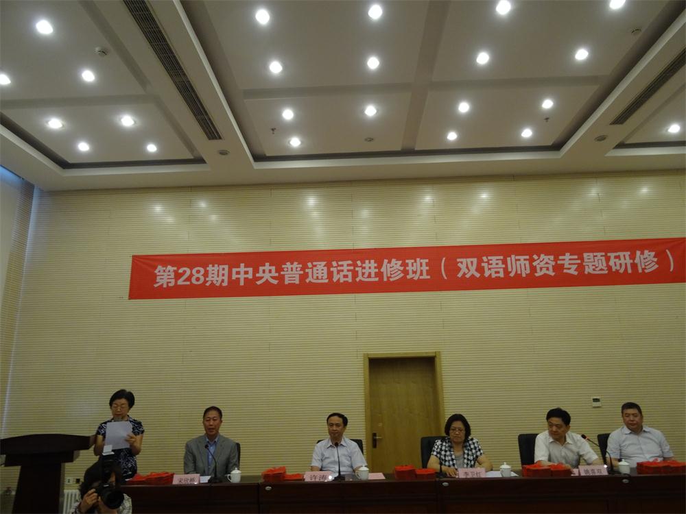 5月23日,第28期中央普通话进修班(双语师资专题研修)结业典礼在北京举行。教育部副部长、国家语委主任、该班荣誉班主任李卫红出席并讲话。我校国家级普通话水平测试员杨绍林、陈利两位老师参加了进修学习,人文学院杨绍林教授担任该班班长。 李卫红副部长在讲话中代表教育部和国家语委对学员们圆满完成学业表示祝贺,提出了殷切的期待。她指出,恢复举办中央普通话进修班,是贯彻党的十八大精神、落实《国家中长期语言文字事业改革和发展规划纲要(2012—2020年)》的重要举措,是推普工作由“提高普及程度”向“提高普及质量”转变的重要标志,也是语言文字工作系统开展党的群众路线教育实践活动的成果。在新的时期,语言文字工作对国家统一、对民族团结、对经济发展、对教育改革发展、对社会进步有非常重要的作用。第28期中央普通话进修班突出双语师资专题研修,有重要的现实意义。推进农村和少数民族地区国家通用语言文字推广普及,是推动城乡统筹发展、加快少数民族事业发展的重要民生工程。她强调,语言文字工作要围绕中心,服务大局,“放开视野看作用,融入发展求发展”,要积极作为,提高国民语言能力、提升个人综合素质、为各族人民实现自己的梦想助力。 毕业典礼由教育部语言文字应用管理司司长姚喜双主持。教育部语言文字应用研究所所长、国家语委普通话与文字应用培训测试中心主任张世平全面总结了该班工作,香港中文大学普通话教育研究及发展中心专业顾问宋欣桥代表授课教师对学员提出了殷切希望。 我校人文学院教师杨绍林在结业典礼上代表全体学员发言,并代表来自全国10个省(区)的89名学员向李卫红副部长赠送全体学员签名的毕业纪念册。 据悉,中央普通话进修班始办于1956年,是教育部、国家语委专门为全国各地培训普通话教学骨干和管理干部的培训基地,至1999年,已举办27期,培训3000多名学员,对全国推普工作起到了不可代替的工作母机作用。第28期中央普通话进修班的学员来自西藏、新疆、青海、甘肃、内蒙古、四川、贵州、云南、广西、海南等10个少数民族较集中的省(自治区)。 参加结业仪式的领导还有教育部教师工作司司长许涛、教育部语用所副所长魏晖、吕同舟,教育部办公厅处长蒋琦,教育部语用司普通话推广处副处长迟宝东,语用所办公室主任刘子琦,国家语委普通话与文字应用培训测试中心综合处处长徐华和普通话培训处处长孙海娜等。