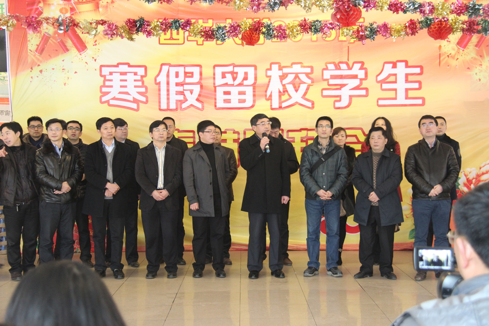 “马蹄声声扬鞭跑,羊年转眼要来到”。2月15日(农历腊月二十七),西华大学一食堂里张灯结彩,喜气洋洋,学校在这里举办了寒假留校学生春节团拜会,为每一位留校学子准备了热气腾腾的团年饭和大礼包。师生欢聚一堂,喜迎新春,不仅让留校学子感受到浓浓的年味儿,也让他们感受到了学校的关爱和温暖。 校党委副书记王小林及党委办公室、党委宣传部、学生工作部、校团委、校长办公室、计划财务处、后勤管理处等相关职能部门负责人以及各学院分管学生工作的书记(副书记)一同慰问了寒假留校学生,观看了同学们自编自导自演的文娱节目。春节团拜会由学生工作部部长徐元彬主持。 王小林副书记代表学校致辞,他向全体寒假留校学生以及节假日期间仍然坚守岗位的教职员工致以亲切的问候和节日的祝福,希望大家度过一个平安、欢乐、祥和而有意义的春节。他希望同学们不论是在考研、兼职、实习还是勤工助学,都能在这段时间好好给自己“充电”,享受一个充实的假期。同学们虽然远离家乡和父母,但是学校会尽可能地为同学们提供学习生活的各方面条件,让大家在学校开心过年。与此同时,他希望同学们积极主动地给家里父母打电话,报声平安,也转达学校对他们的节日祝福。 外国语学院2014级英语专业周艳迪同学是寒假留校学生之一,她作为留校学生代表在团拜会上发言。她表示,在象牙塔里面,同学们享受着步入社会之前的美好生活,也见证着学校的发展和进步,这个春节虽然没有回家团年,但深深感受到了学校带来的家一般的温暖。她代表留校学生表示会努力成为更加优秀的自己,以实际行动回报学校领导和老师的关爱。 为了让留校学生过好寒假和春节,学生工作部根据学校部署,精心制定了工作方案,组织安排好各项活动。除了举行春节团拜会和发放慰问礼品外,还在当天中午为留校学生提供午餐、2月19日(正月初一)免费提供早餐。学校将根据学生在“易班”网络互动社区上登记的情况和现场确认的情况向每位同学发放50元慰问金。据悉,登记的留校学生人数有600余人。 新春团拜会上,勤工助学的同学们精心准备的游戏和节目也让团拜会更有年味儿,其乐融融。中午12时,王小林副书记及相关职能部门负责人、各学院书记(副书记)与寒假留校学生共同吃了团年饭,师生促膝交谈、问寒问暖,共话学校发展,同庆新春佳节。 四川教育电视台、成都电视台、四川新闻网等媒体记者来校作了采访报道。 春节团拜会现场 王小林副书记及相关职能部门负责人、各学院书记(副书记)亲切慰问留校学生 互动游戏 师生同吃团年饭 丰盛的团年饭菜 |