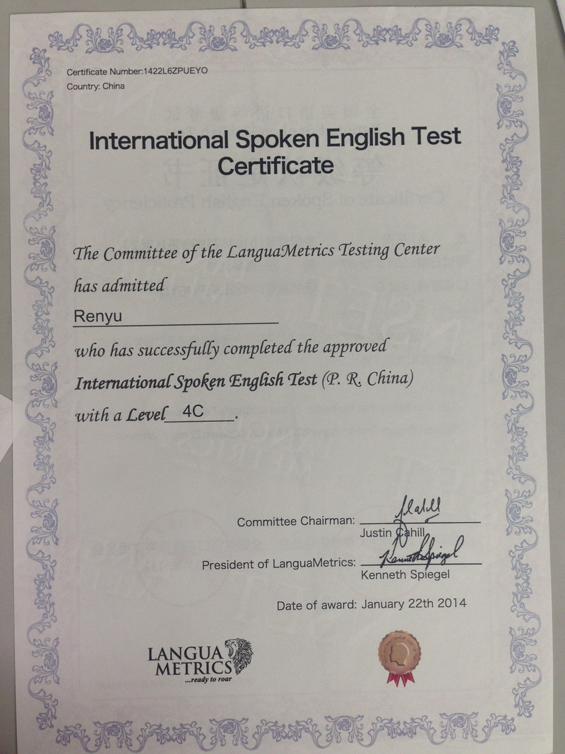 近日 ,首届全国英语口语测评大赛暨英语口语等级考试(NSEC)结果公布,我校学生共4人获得奖项,其中来自艺术学院2012级学生曾瑞玲、经济与贸易学院2012级学生任雨及2013级材料科学与工程学院学生杨裕佳三位同学荣获了大学生组三等奖;2012级艺术学院欧阳诗钰荣获了大学组优胜奖。以上四位同学还同时获得了全国英语口语等级考试认定4级C认定证书,充分展示出我校学子的英语风采与优秀的表达沟通能力。