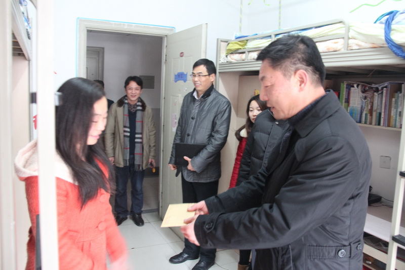 2月9日下午,省教育纪工委书记狄志军、省教育厅审计处处长陆卫江一行在副校长何建平、校党委组织部部长唐润华、副部长罗海的陪同下,走访慰问了我校生活困难党员代表和优秀教师代表,为他们送来了新春的祝福和亲切的慰问,让老师们在寒冬中感受到了党和政府带来的浓浓暖意。 狄志军书记、何建平副校长一行先后看望慰问了教工困难党员陈卫泽和学生困难党员陈凤玲,并送去了慰问金。 狄志军书记一行来到身患重病的陈卫泽老师家中。走进房门,就看见陈卫泽老师戴着口罩,坐在沙发上,看到狄书记一行的来到,立即起身握住狄书记的手,感激之情溢于言表。狄书记把慰问金送到陈老师的手里,并嘱咐他安心养病,保持乐观向上的精神,继续和疾病作斗争,争取早日康复。接着,狄志军书记一行来到学生公寓德馨苑,慰问人文学院2013级学生、生活困难党员陈凤玲,仔细询问了陈凤玲同学的学习、生活和家庭情况并代表省教育厅送上慰问金,勉励她积极向上,克服困难,勤奋学习,学有所成。 在行政楼510会议室,狄志军书记一行在副校长何建平、校党委组织部部长唐润华、人事处处长杨伟等人的陪同下,与我校食品与生物工程学院车振明教授、理学院朱雯教授两位优秀教师代表进行了座谈交流。狄书记仔细询问了两位教师的工作、生活与家庭情况,鼓励他们继续在教学科研方面不断探索改革,取得新的成绩。 据悉,在元旦春节期间开展走访慰问生活困难党员、优秀教师是省教工委特别关注的工作方向,关怀、帮扶生活困难党员也是我校践行党的群众路线的具体体现,也是增强党员的归属感、提高党的凝聚力的重要方式。学校党委历来重视帮扶困难党员和教职工工作,每年底和“七一”期间都要组织开展相关走访慰问,使困难党员和教职工深切感受到学校的温暖。