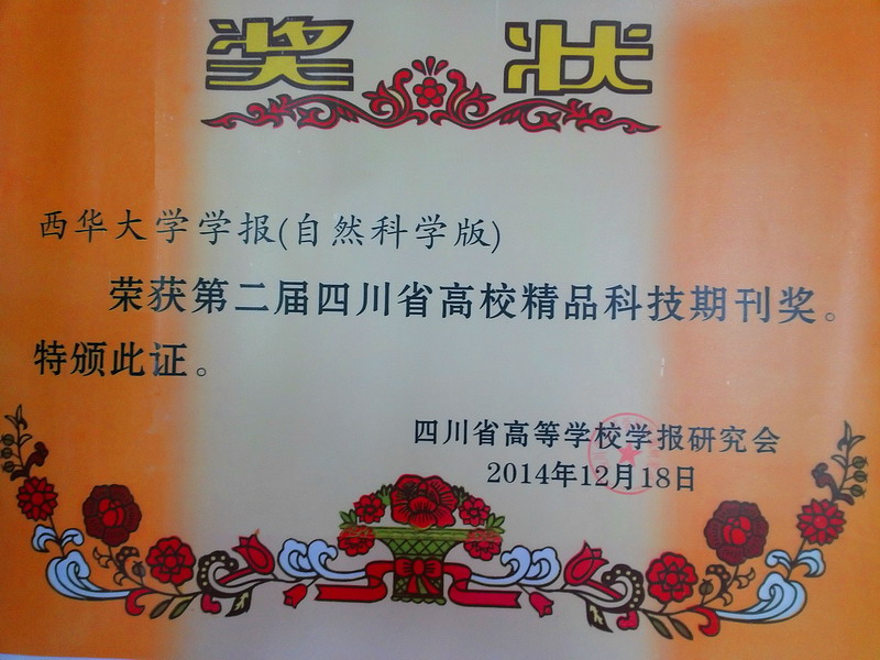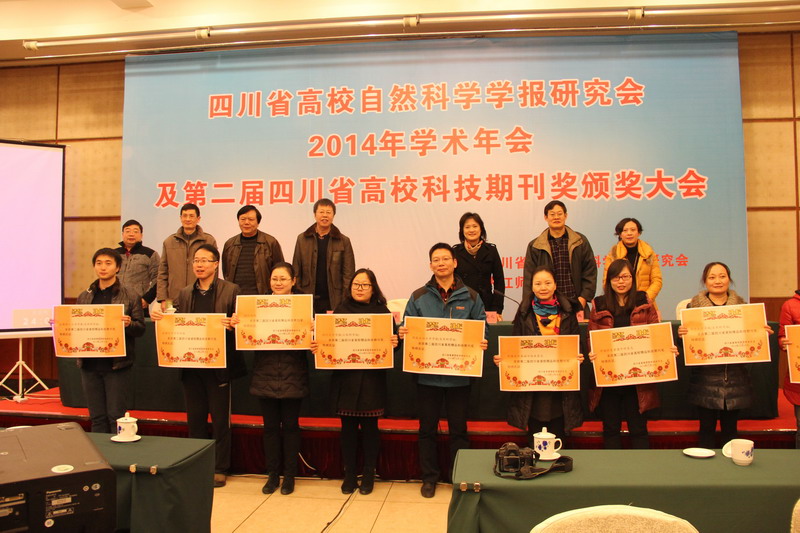 12月18日,四川省高校自然科学学报研究会2014年学术年会及第二届四川省高校科技期刊奖颁奖大会在内江召开。来自全省各高校科技期刊的近百名代表参加了会议。我校作为四川省高校自然科学学报研究会副理事长单位,派出学报相关负责人参加了此次会议。 会议按精品科技期刊、优秀科技期刊以及特色科技期刊三个等级对全省的科技期刊进行评选。经省内外专家对参评的80多家四川省高校科技期刊的学术质量和编辑质量进行了严格评审,共评出精品科技期刊15种,优秀科技期刊23种,特色科技期刊3种。《西华大学学报(自科版)》荣获“第二届四川省高校精品科技期刊”奖。 《西华大学学报(自然科学版)》自创刊以来,办刊质量不断提升,到目前为止,本刊已成为中国科技核心期刊、教育部全国高校优秀科技期刊、四川省自然科学一级期刊,并被国内的CNKI、万方等数据库以及国外大型文献检索机构AJ(РЖ)、CA、CSA、IC收录。