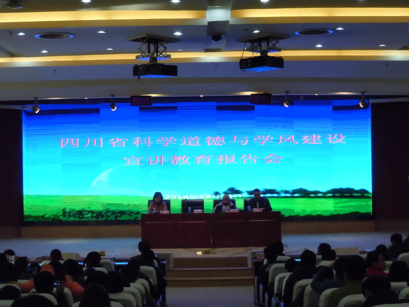 12月16日下午,在学工部和研究生部相关老师的带领下,我校14名研究生和5名本科生一同参加了由省教育厅、省科协主办、四川科技馆承办的四川省科学道德与学风建设宣讲教育报告会。 本次报告会由省科协主席赖静主持。首先由主持人介绍了本次报告会的两名主讲嘉宾,并对参加此次报告会的各成都高校人员以及各科研院所表示了热烈的欢迎。接下来,电子科技大学教授、博士生导师彭启琮作了题为“科技工作者的责任与担当”的报告。在报告中,彭教授讲述了优秀科学家邓稼先、杨振宁的故事,结合自己的工作和科研经历阐释了作为一个科技工作者应有的责任和担当,并结合学术界的一些不端学术行为告诫所有科学工作者应该遵守纪律,彭教授说到:“当你感觉到纪律约束你的时候,你已经堕落了。”最后,彭教授表达了自己对参会的科研院所和在读研究生“坚守学术道德底线,做诚实可信的学术人”的殷切期望。 紧接着,省科协荣誉主席、我国沉积学奠基人之一的刘宝珺院士作了题为“弘扬科学精神 树优良学风”的报告。刘院士讲诉了他从出生到学习和工作的经历,展现了他热爱祖国、执著科研、吃苦耐劳、乐于奉献的科学精神。他强调个人想要扬眉吐气的前提是国家富强,当代青年人应该把爱国放在第一位,国家哪里需要就去哪里,还强调了要在打牢专业基础的前提下进行科研创新。同时,他倡导当代青年研究生要读古书,理解中国传统文化,通过科研创新增强我国在国际上的话语权。报告会的最后,主持人对两位专家、学者的讲话作了总结,并倡导将个人理想融入祖国的建设中,实现中华民族伟大复兴的中国梦。 通过参加此次报告会,同学们明确了作为一名科技工作者的责任和担当,同时也体会到作为一名科技工作者应该具备的科学精神。报告会结束后,同学们纷纷表示要学习两位专家投身科研、吃苦耐劳、无私奉献的科学精神,刻苦钻研,为祖国的现代化建设贡献自己的一份力量。