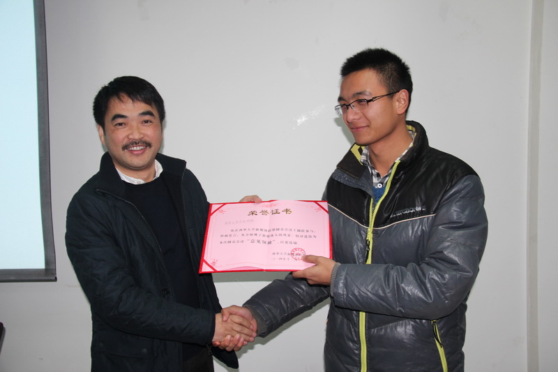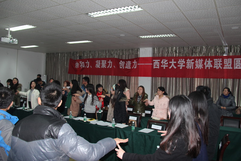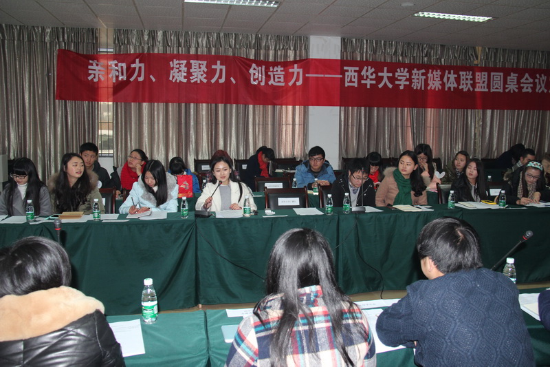 告别2014,喜迎2015。2014年的最后一天,12月31日下午3:00,在这辞旧迎新之际,西华大学新媒体联盟成立后的第一次会议在学校体育馆北会议室召开。校党委宣传部负责人及新媒体联盟26个理事单位的代表参加了此次会议。我校人文学院98级校友、成都市微电影协会会长、成都商报活动策划中心主任、成都商报营销策划公司副总经理赵郁蒙应邀参加会议。 每个人都是宣传部部长 “每个人都是宣传部部长!”这是校党委宣传部部长张力的真情诉说,同时,这也是一次对新媒体联盟的呼吁。“在信息化的时代,在新媒体大趋势下的校园,一个人写稿、几个人办报的场景已成历史。我们需要更多自媒体用户的参与,需要更多新媒体平台的推广。真诚欢迎具有主人翁意识的你,都是‘宣传部长’的你,来为我们的新媒体联盟发展进言献策,共同推进西华大学官方微博微信迈向新的台阶……”谈及新媒体的发展,张力部长对联盟理事充满了期待。 “这是一次关于西华新媒体未来的讨论会,这是一次新媒体人思想的碰撞,这是一次idea的闪光!点赞?NO!转发?UNWANTED!评论?TOO LOW!新媒体时代,我们需要思维的汇聚;新媒体校园,我们需要震撼地发声!听了太多导师的名言,补了太多心灵鸡汤,见了太多人生赢家……”西华大学新媒体联盟圆桌会议主持人严雯嘉感概地说。 这里,只有点子,没有指点 各抒己见,有想法、有见地是新媒体人的基本素质之一。圆桌会议上,各理事单位代表纷纷自由发言。 与传统会议不同,本次圆桌会议首次引进了风靡网络的知名小吃“辣条”作奖励。在此欢快的气氛之下,各代表畅所欲言、各抒己见,既尖锐地指出了我校新媒体平台的不足之处,也大胆设想了诸如“方程车队带你兜风”“校园里的挖掘机”等别开生面的策划。 "点击网络"的理事代表提到,对于联盟来说现阶段最主要的任务就是增强影响力,让校内各位同学知道、了解新媒体,并积极参与进来,新媒体才会有更好的发展。人文学院的理事代表提到,要增强新媒体与粉丝的交流,双向的互动才能带动大家的积极性。 这次圆桌会议,没有指点,只有喷涌而出的点子,几位老师和嘉宾也是不禁拍案叫绝。在默默点击屏幕的你,看到这些刺激感官的策划,有没有期待和心动呢? 亲和力、创造力、凝聚力, 三力合一 会上,为了让大家彼此认识,相互熟悉,特别加入了互动活动环节,让各位理事同学共同自拍,发布微博。还有游戏环节交流彼此情感,更是送出了“任性”的辣条作为奖励。 经过讨论阶段,各理事单位各抒己见,表达了自己的看法,并通过不记名投票的形式,选出了这次圆桌会议的意见领袖,他就是西华大学点击网络的代表叶江,赵郁蒙校友现场为叶江同学颁发了荣誉证书。 赵郁蒙校友应邀与代表们分享了新媒体运营经验以及未来发展趋势。他鼓励同学们开拓思维,不断创新,形成合力。 凝聚校园新媒体力量,推动西华校园新媒体联动与共同进步是本次圆桌会议的主题。在新媒体运营规则雏形的基础上,各参会理事代表就响应点赞与转发、轮流提供特色策划方案、加强理事单位的交流与沟通等方面达成了共识。 新的一年,西华大学新媒体联盟需要做的,就是将这三力合一,汇聚成向前的力量。新媒体发展所需要的,不仅是一闪而过的思维火花,而是一盏盏常亮的智慧明灯。这些,需要每个人的能量。 新年要有新气象,而新媒体,正是这新气象里的耀眼光芒。
