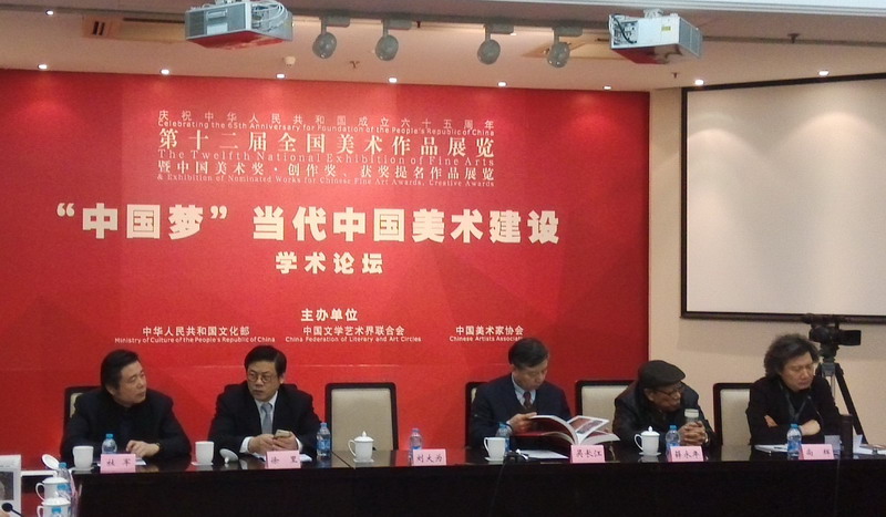 12月15日上午,“第十二届中国美术作品展览暨中国美术奖•创作奖、获奖提名作品展”在中国美术馆隆重启幕。下午,“当代中国美术建设学术论坛”在中国美术馆7层报告厅举行。二十几位批评家、学者、获奖艺术家共聚一堂,为时代美术把脉。我校艺术学院美术系主任屈波博士受邀参加会议。 论坛现场 |