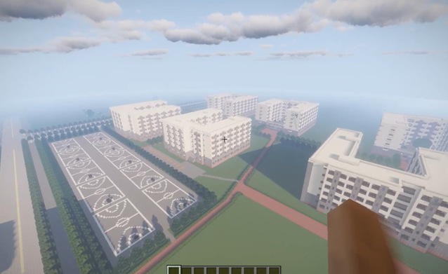 牛力是一个真实坦率的人,在其他同学看来“太牛了”“跟真的一样”的作品,在他眼中“其实没什么,“专业学习的建筑学知识起到很大作用。”他这样讲述搭建的过程:电脑屏幕分为三部分,左边是游戏画面,右边上下分别是宏观的卫星图和细节图。通过卫星图以及尺子量出建筑的长度,同时大致规划建筑物的形状,边与边之间做好定位。然后修外立面并据此确定比例,之后修房子的第一层,大概计划出门窗、楼梯间的位置,最后封顶即可。“查看照片、算比例、构思设计,再根据不同的建筑做一些调整。”他说道。